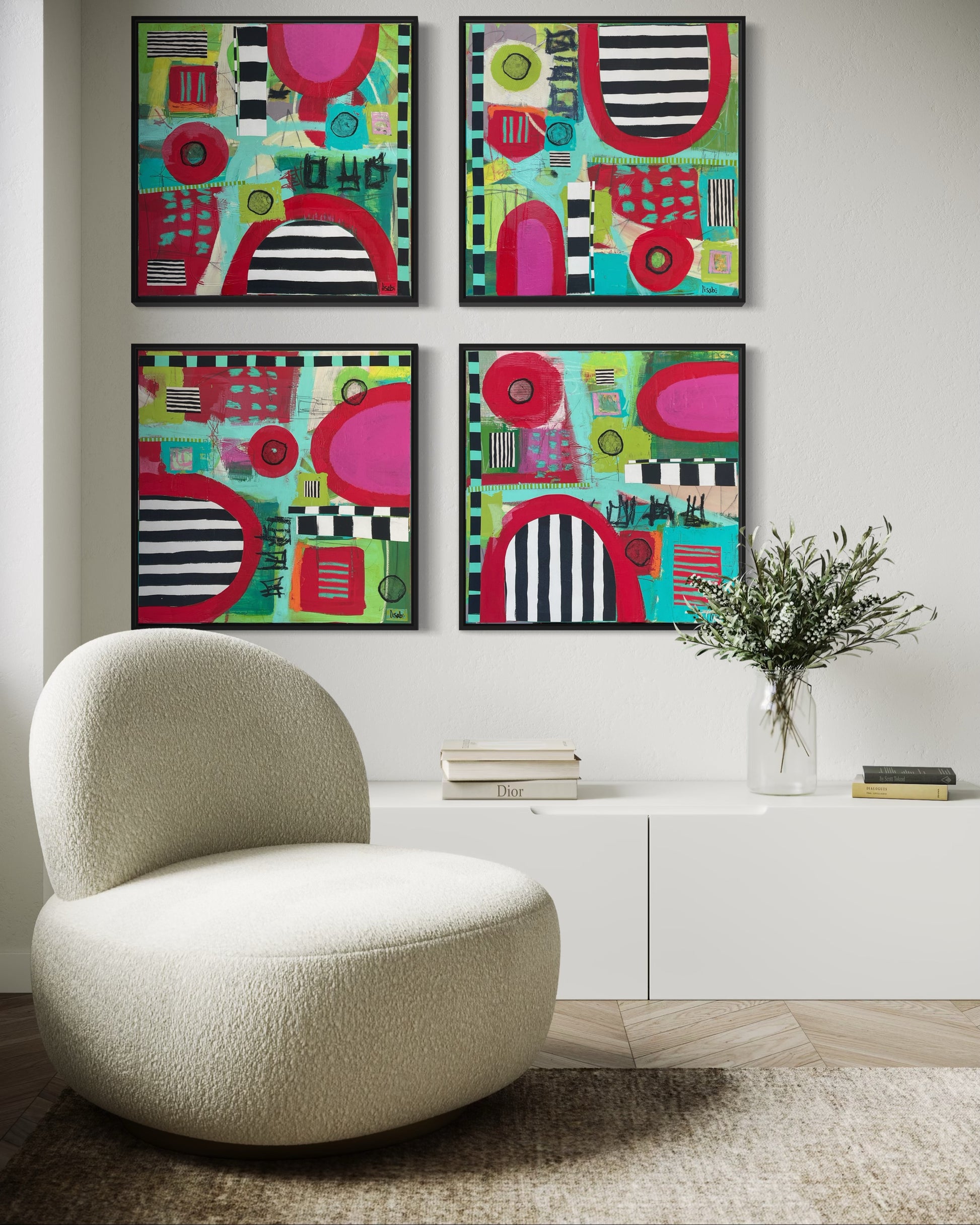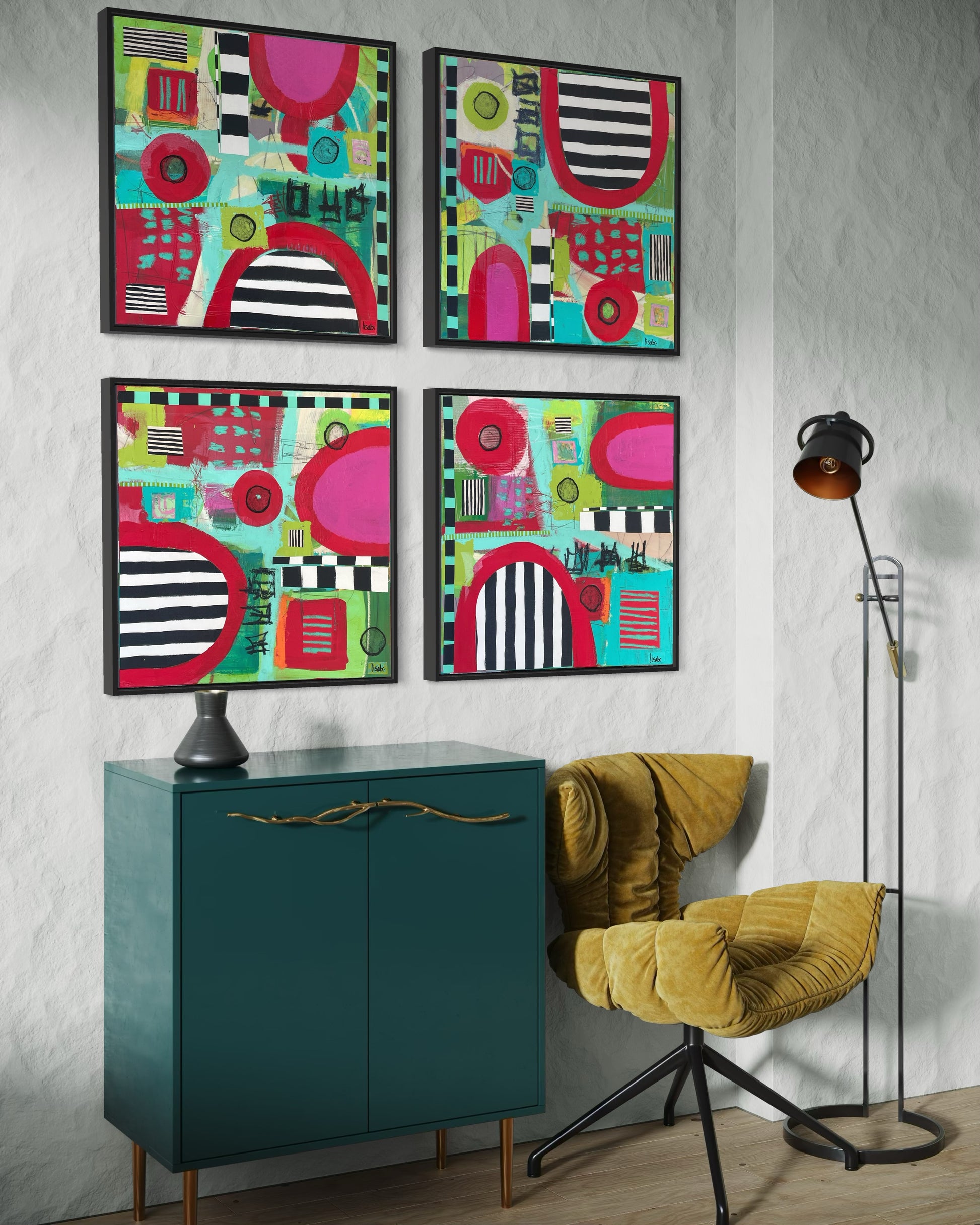 Acrylic, mixed media on stretched canvas